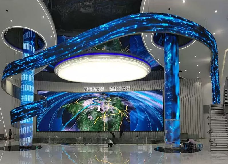 自由自在に曲げることができる。薄くて軽く、円柱や球体、湾曲の建造物など様々な場所に対応できます。ピッチ数は4mm以下と高精細なため、LEDであることを感じさせない美しい映像を実現します。